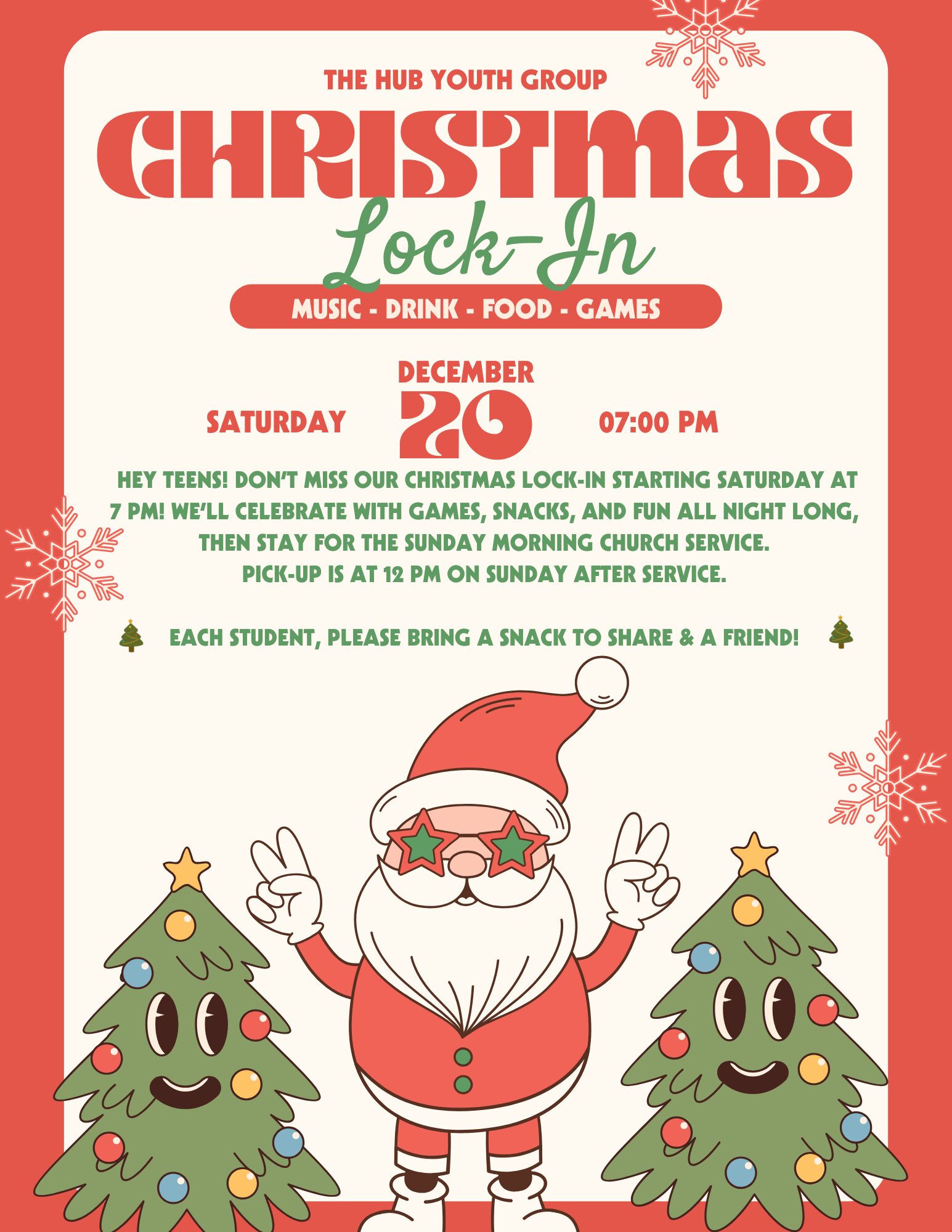 - Our youth lock-in is this Saturday, tomorrow, from 7pm until Sunday at 12pm. Please pray for the youth and sponsors as we celebrate Christmas and have fun.